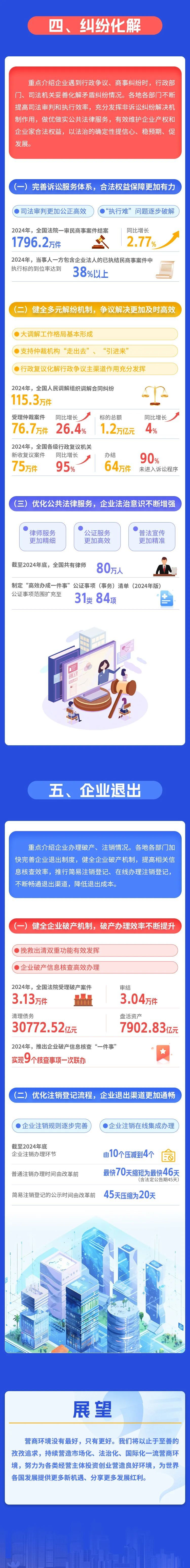 央視網消息:據國家發改委微信公眾號消息,《中國營商環境發展報告(2025)》(以下簡稱《報告》)按照企業從設立到退出的全生命周期,分5個部分展示2024年全國層面營商環境各領域進展成效?!斑M入市場”部分,主要介紹破除市場準入壁壘,以及提升企業登記注冊、不動產登記、項目審批服務、電水網接入便利度等方面情況。“要素保障”部分,主要介紹保障經營主體獲取資金、勞動、技術、數據等生產要素情況。“經營環境”部分,主要介紹深化公平競爭治理、完善招標采購機制、強化信用體系建設、改進監管執法方式、加強知識產權保護、完善稅費支持政策、優化電子支付體系、深化通關模式改革等方面情況?!凹m紛化解”部分,主要介紹完善訴訟服務體系、健全多元解紛機制、優化公共法律服務等方面情況?!捌髽I退出”部分,重點介紹健全企業破產機制、優化企業注銷登記流程等方面情況。