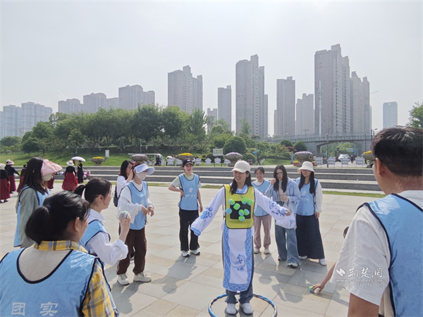 在“陳塘關試煉”游戲中,青年們手拉手圍成一圈,緊密配合傳遞呼啦圈,每一次成功傳遞都引來陣陣喝彩;混天綾爭奪戰中,兩隊青年你爭我奪,紅綢在雙方手中三度易主,生動詮釋“力與智的博弈”;“結界守衛戰”中,雙方青年巧妙運用戰術,在激烈的博弈中充分展現團結一心的精神風貌。