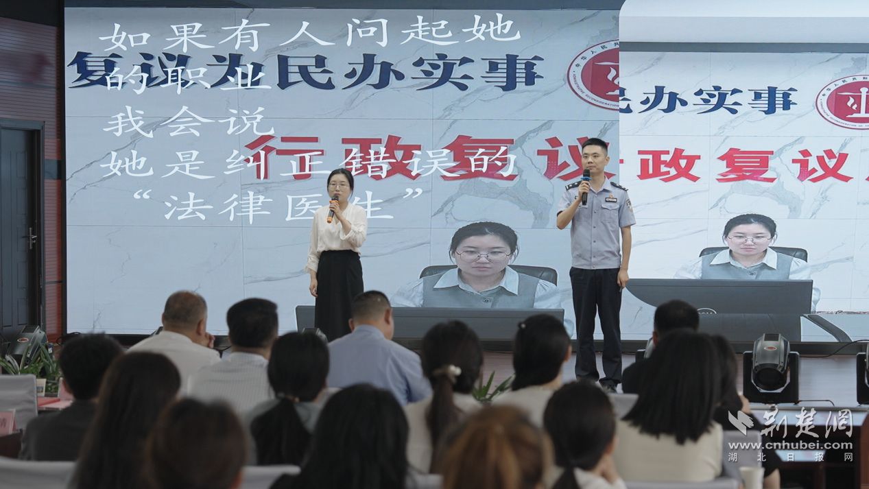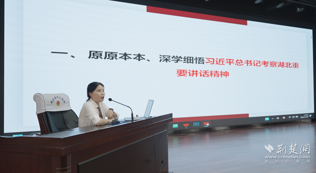 仙桃市委黨校教師劉紫怡以《學習習近平總書記關于湖北工作的重要講話和指示批示精神 奮力譜寫中國式現代化湖北篇章》為題講授了一堂思政課,帶領大家深入學習貫徹習近平總書記考察湖北重要講話精神,解讀了青年干部在科技創新、基層治理、維穩安保等領域的使命任務。