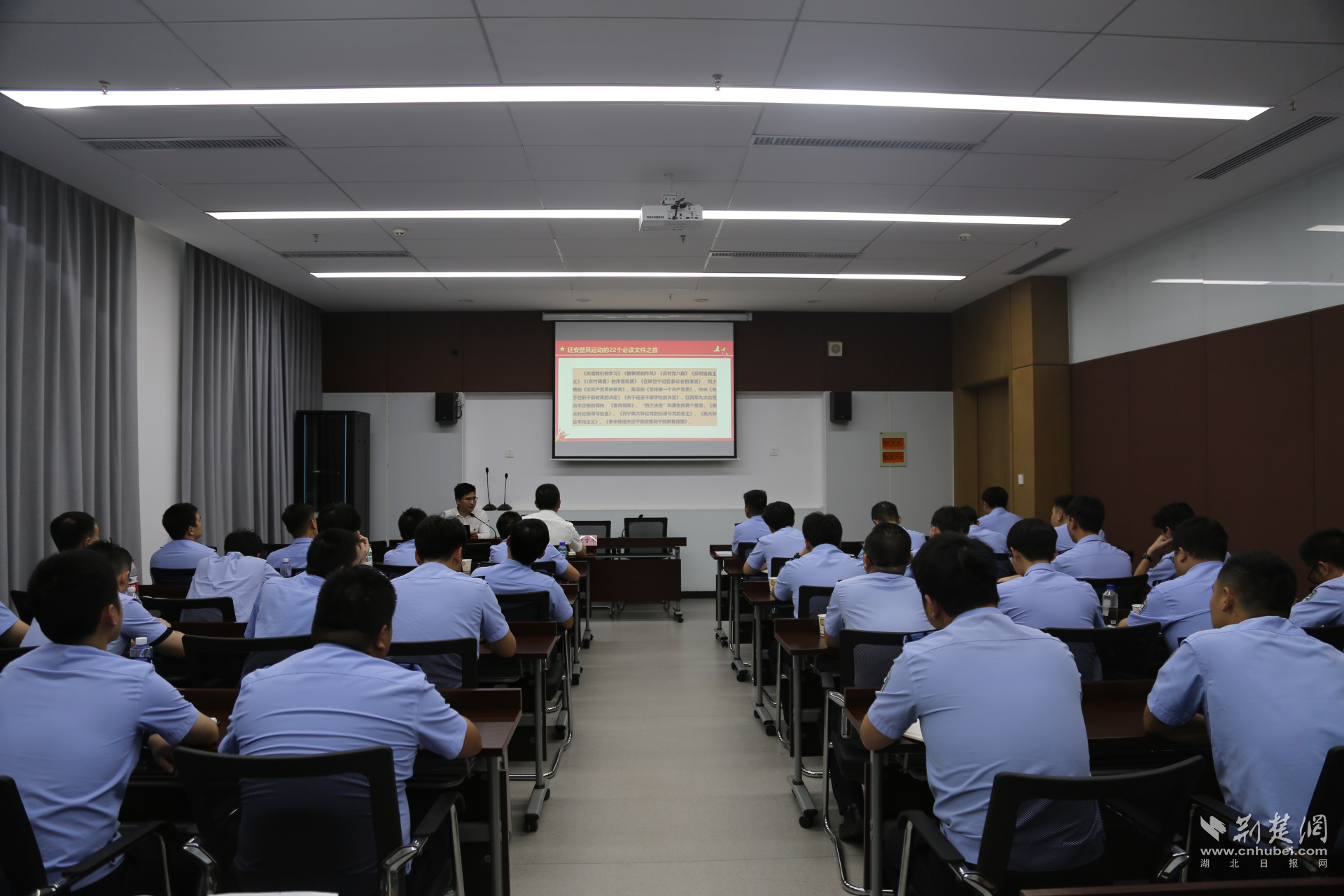 參觀結(jié)束后,青年民警們走進(jìn)荊門(mén)鄉(xiāng)村振興學(xué)院教室,聆聽(tīng)荊門(mén)市委黨校教師吳永忠的專(zhuān)題授課——《〈改造我們的學(xué)習(xí)〉原著導(dǎo)讀》。課程從延安整風(fēng)的時(shí)代背景、《改造我們的學(xué)習(xí)》的主要內(nèi)容、文章的當(dāng)代價(jià)值等三個(gè)方面入手,并結(jié)合當(dāng)前監(jiān)獄工作實(shí)際,為青年民警們帶來(lái)了一場(chǎng)深刻的思想洗禮。