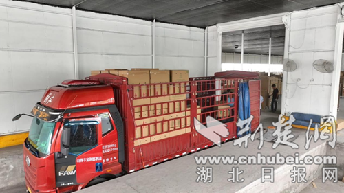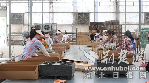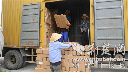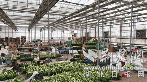 在湖北農青園藝科技有限公司的物流基地,大型貨車往來穿梭,工人們將一箱箱包裝精美花卉進行裝車,由這里發往全國各地。