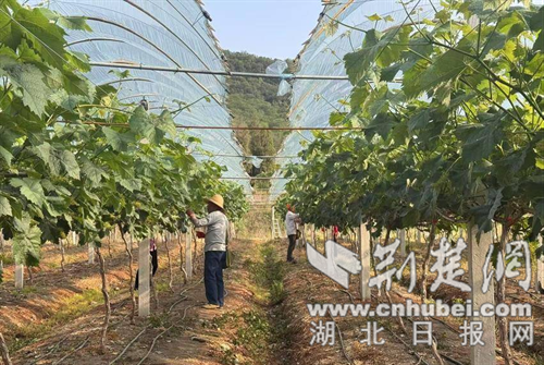荊楚網(wǎng)(湖北日?qǐng)?bào)網(wǎng))訊(通訊員 胡莎)5月6日,走進(jìn)京山市石龍鎮(zhèn)聯(lián)合村葡萄園,果農(nóng)們正搶抓農(nóng)時(shí),開(kāi)展一系列科學(xué)高效的管護(hù)工作,田間地頭一派繁忙景象。