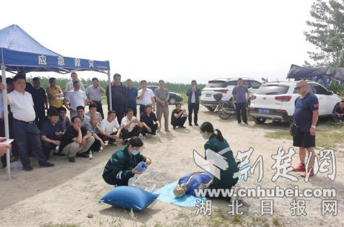 活動中,鎮衛生院醫護人員針對汛期高發的溺水事故,現場培訓心肺復蘇等急救知識,指導參演人員進行實操訓練,幫助他們熟練掌握胸外按壓、人工呼吸等技能。隨后,演練模擬強降雨致河道水位暴漲、群眾落水的緊急情況,鐘祥市中志協應急救援隊迅速啟動水上救援。救援隊員駕駛沖鋒舟,運用拋投救生圈、繩索牽引等技術,將被困人員安全轉移,展現出了高效的協作能力。
