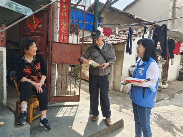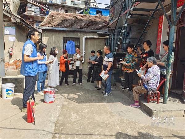 消防宣傳員向居民發放消防資料。 通訊員供圖