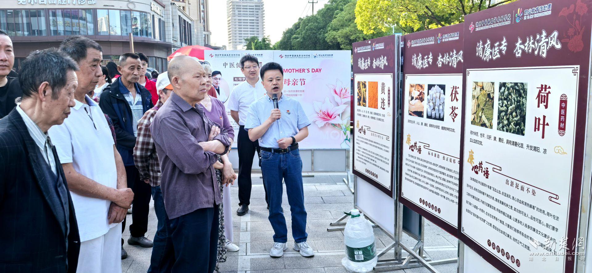 “黃連,良藥苦口利于心。濕為百病之源,茯苓以其淡滲利濕的功效,祛除濕氣,根除病源。我們要學習茯苓的精神,樹立正確的價值觀力。”中醫學院院長孫權在廉心藥語展區,講解了多種中藥材的典故,將清廉文化與中醫藥文化相結合,學校和社區的黨員們在感受傳統文化魅力的同時,也上了一堂廉政黨課。