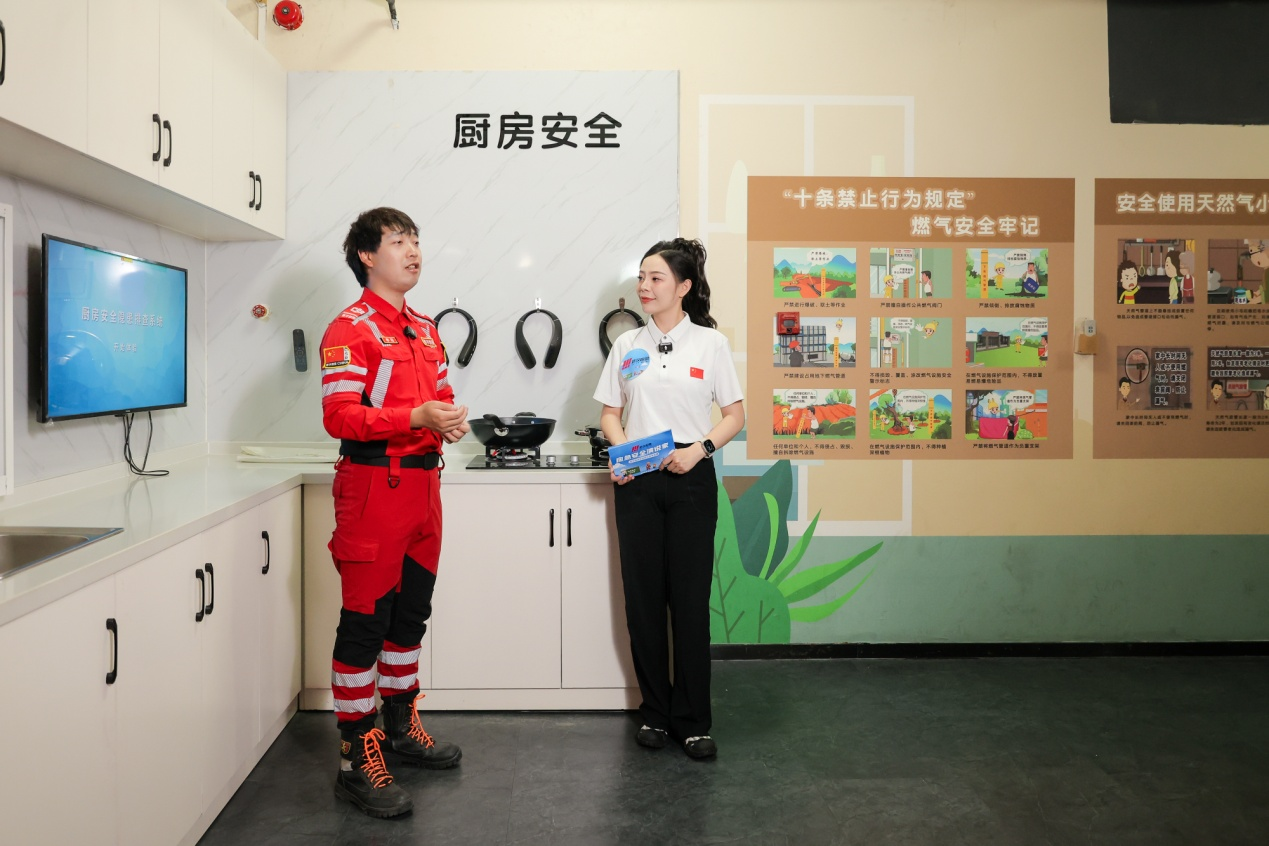 “廚房火災(zāi)在居民火災(zāi)中較為常見(jiàn)”。在廚房安全區(qū),面對(duì)油鍋起火、燃?xì)庑孤┑韧话l(fā)意外,直播間展示了“平移蓋鍋蓋”等應(yīng)急處置方法。