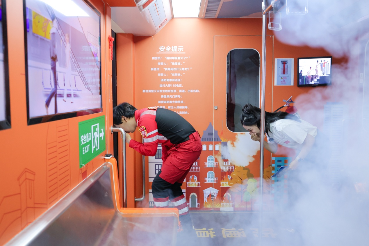 濃煙彌漫的模擬車(chē)廂內(nèi),教官詳細(xì)講解了地鐵內(nèi)的各種安全標(biāo)識(shí)、發(fā)生火災(zāi)時(shí)的正確應(yīng)對(duì)措施和逃生方法。交通安全環(huán)節(jié),“車(chē)輛翻滾模擬艙”還原側(cè)翻沖擊,為觀眾演示“破窗錘+割刀”二合一工具用法,并提醒網(wǎng)友“落水后先破窗再解安全帶”。