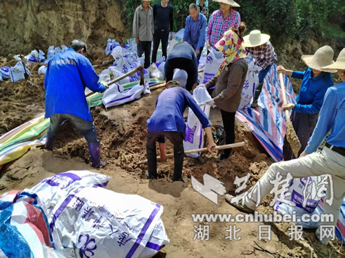 荊楚網(湖北日報網)訊(通訊員劉艷 陳雷雷)“壩在,水就在!”5月12日,當顯靈河攔水壩垮塌的消息傳來,村民們火速集結,自愿與村“兩委”一起,頂著烈日搶修攔水壩。