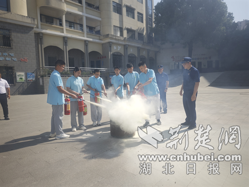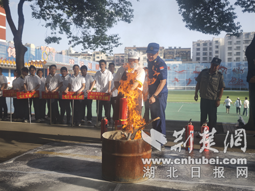 消防宣傳員教師生如何正確使用滅火器。通訊員供圖