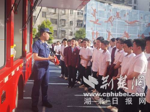 “握住噴管對準火苗根部,壓下把手!”在荊門市外語學校操場,消防員手把手指導學生操作滅火器。隨著陣陣白煙騰起,參與演練的學生迅速撲滅火盆火焰,贏得圍觀師生陣陣喝彩。消防云梯車緩緩升起,數十米高空作業的震撼場景讓學生們驚嘆不已。“原來消防員叔叔每天都要進行這么專業的訓練!”七年級學生小李在體驗完消防服的穿戴后,對消防員的敬佩之情溢于言表。