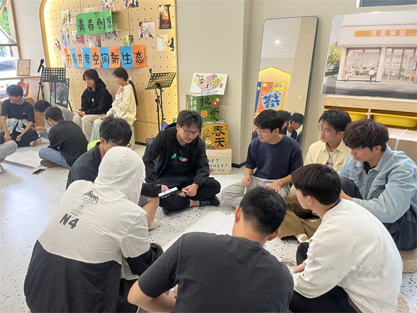 分組討論環節,大學生們結合專業所長展開熱烈討論,圍繞“青年主理人角色定位”“提升鄰里客廳吸引力”“創新運營模式與活動形式”三大核心議題進行頭腦風暴?!拔姨焯炫菰诟鞣N論壇,這次可算找到用武之地了!”中南財經政法大學經濟管理專業學生從運營策略角度提出商業合作方案;設計類專業學生則結合美學理念構思空間改造方案,大家討論得熱火朝天,不斷迸發出創新的火花。
