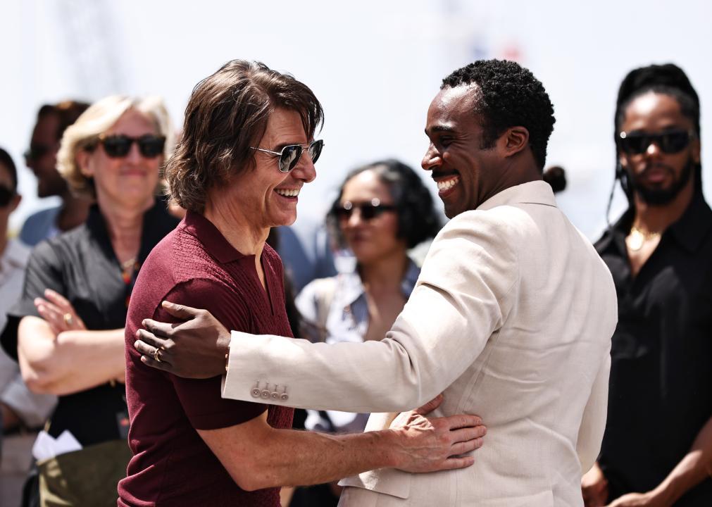 5月14日,在法國(guó)戛納舉行的第78屆戛納國(guó)際電影節(jié)上,《碟中諜8:最終清算》主演、美國(guó)演員湯姆·克魯斯(左)和特拉梅爾·蒂爾曼亮相拍照式。新華社記者 高靜 攝