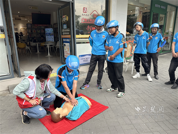 荊楚網(湖北日報網)訊(記者 李燕 通訊員 陳雅慧)為提升新就業群體應急防護能力,近日,武昌區南湖街道中央花園社區紅十字志愿服務隊在暖新驛站開展“應急救護進‘騎’線”專項活動,為外賣騎手等群體送上安全技能包與暖心救護包,織密新就業群體安全防護網。