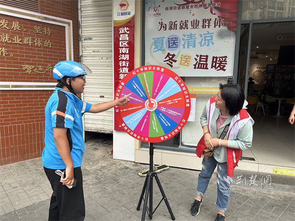 “中國紅十字會成立于哪一年?”“成人胸外心臟按壓頻率為多少?”在“紅十字知識大轉盤”環節,騎手們圍繞急救常識、公共衛生知識等內容踴躍答題,轉盤游戲將嚴肅的急救知識轉化為趣味互動。社區工作者介紹,游戲化的學習方式讓抽象的救護理論入腦入心,守護生命的技能不再是紙上談兵,而是融入新就業群體日常認知的安全密碼。