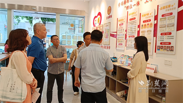 考察過程中,雙方展開了深入交流??疾靾F成員認真聆聽,并結合自身實際情況探討服務細節??疾煲恍斜硎荆S鶴樓街道的經驗做法具有很強的借鑒意義,特別是“黨建+服務+治理”的創新服務模式值得學習。