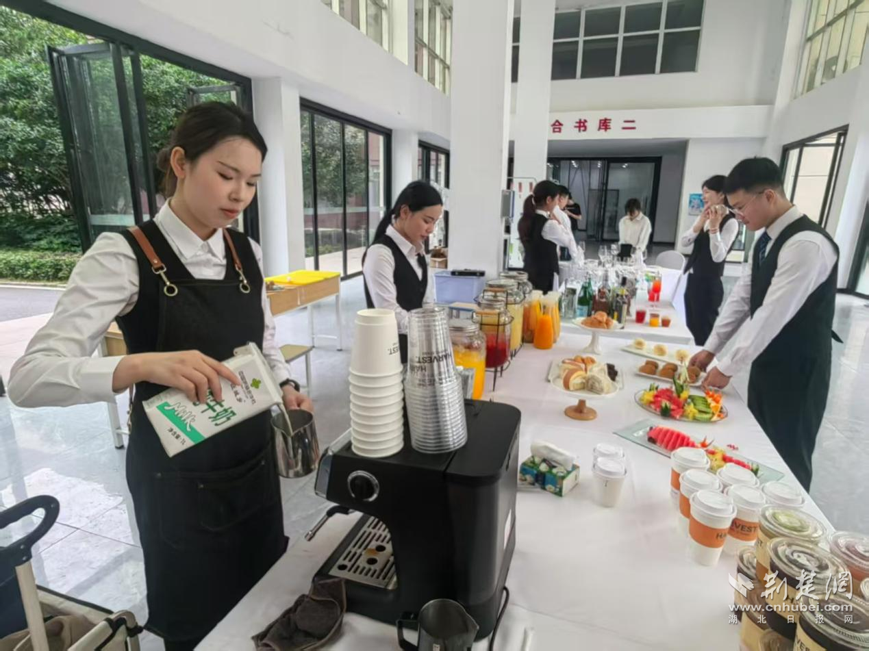 荊楚網(wǎng)(湖北日報網(wǎng))訊(通訊員尤亮、孫義堯)5月14日,湖北省武昌職業(yè)學院舉行職教周活動,該學院商學院學子姚情苗與同學們一起進行咖啡拉花圖案制作以及餐具無菌精細處理,現(xiàn)場把制作的飲品免費分享給同學們品嘗,獲得廣泛好評。