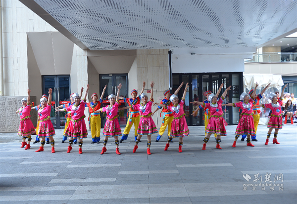 活動現場,隨著歡快的節奏響起,心怡藝術團帶來開場舞《幸福情歌》,輕盈的舞步配合歡快的旋律,將幸福生活的喜悅傳遞給每一位觀眾。銀光藝術團帶來《西部放歌》,激昂的音樂與剛勁的舞姿展現出西部人民的豪邁情懷。軍旗藝術團帶來極具特色的“熱巴鼓舞”《放飛熱巴》,鼓點鏗鏘有力,舞步騰挪跳躍,將藏區獨特的風情盡情釋放。最后登場的飛天黃鶴藝術團帶來《大武漢之戀》,舞者們用優美的舞姿描繪出武漢的城市魅力,表達了對家鄉的深情厚愛。