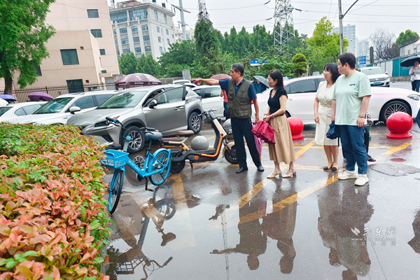 代表調研幼兒園人車分流情況。 通訊員供圖