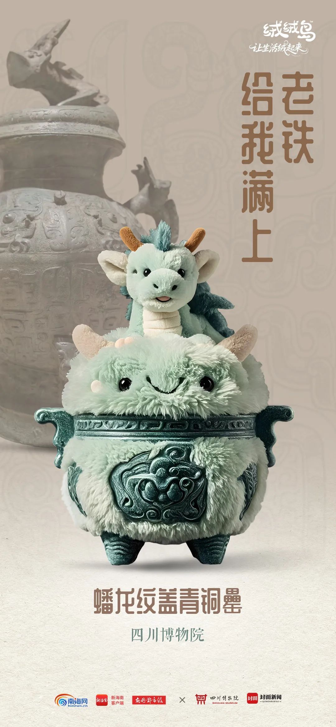 罍(léi),盛酒器,是古人祈禱風調雨順或祈求祖先保佑等祭祀活動中的重要禮器之一,功用決定著器宇軒昂,這是一件代表西周青銅器最高水準的銅罍。其造型別致,紋飾華麗,蓋上蟠龍有十字形雙角,嘟嘴瞪眼萌態(tài)十足,前足踞于蓋頂盤尾為蓋。背有立棱, 身飾雙回紋和常見的巴蜀符號。