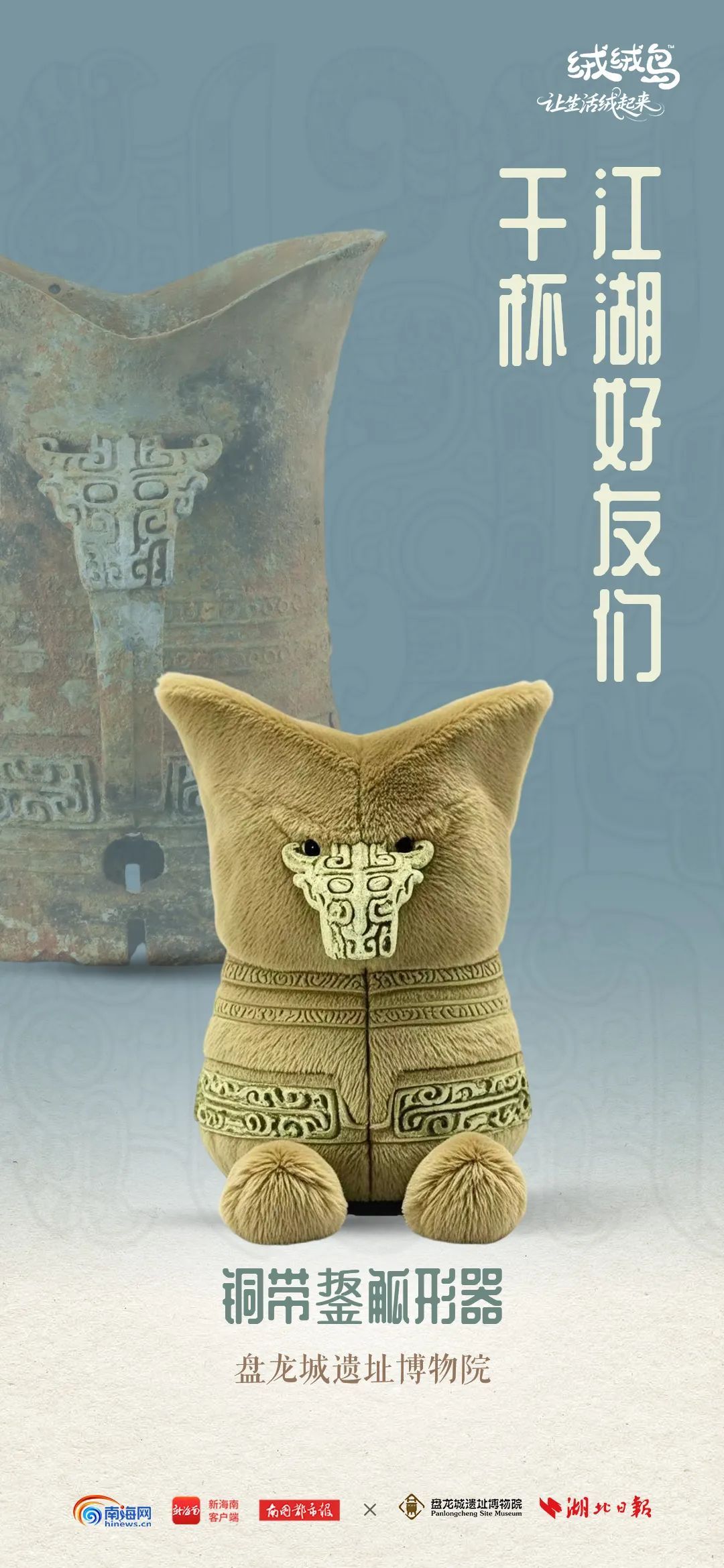 銅帶鋬觚形器,高18.5厘米,容積約440毫升,是一件飲酒器。整體造型兼具了觚、斝、角等青銅酒器的部分特征,左右對稱,富有美感,是盤龍城先民們的獨具創(chuàng)新,它們吸收中原文化,又結合地方特色,形成了自己的文化標志。