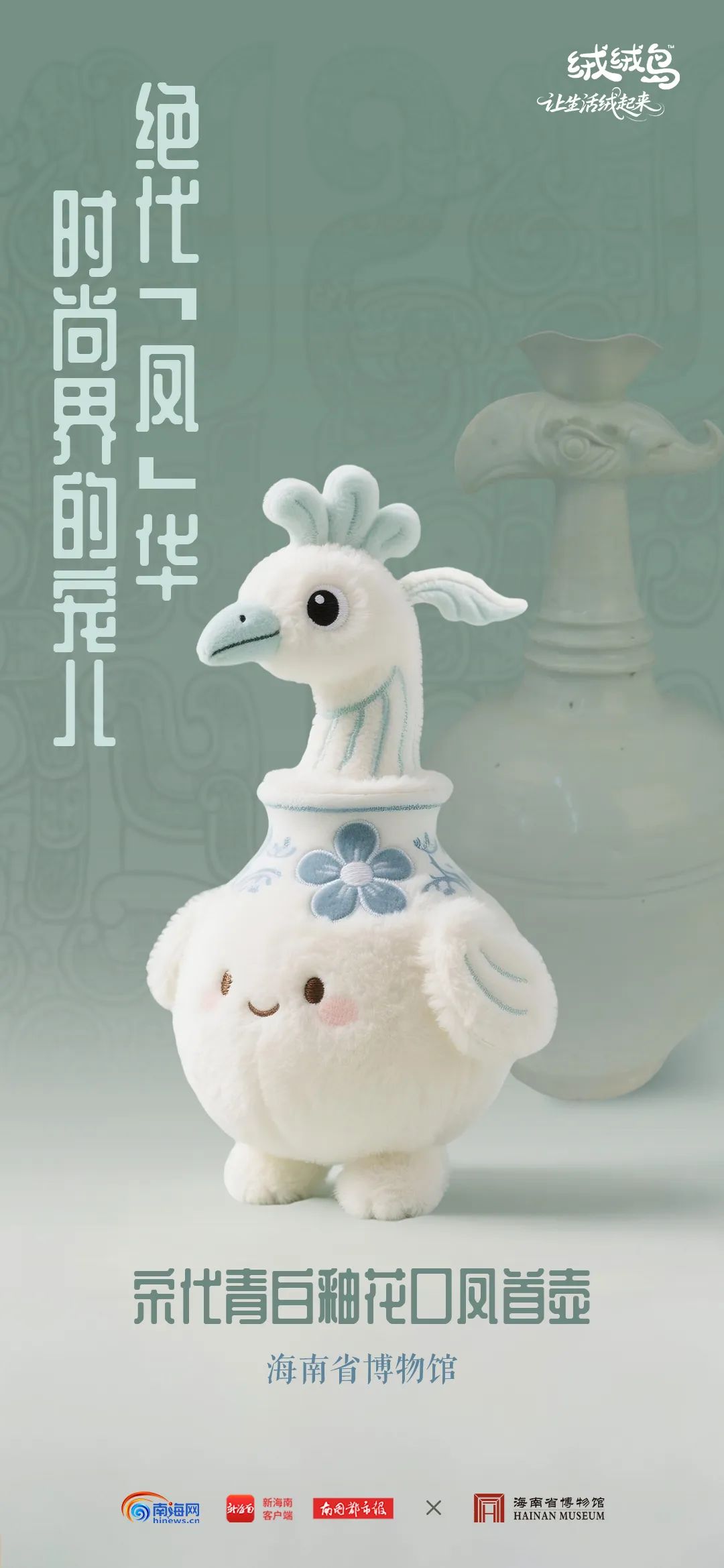 此壺造型是受唐代波斯金銀器風格影響而演變來。口部盛開的四瓣花象征鳳冠,鳳首上大喙、大眼,長頸漸寬,豐肩圓腹,頸下部有三道凸弦紋,腹部有兩道弦紋,鳳首后部恰似一束長羽,上飄呈鉤狀。胎質潔白細膩,釉色白中泛青,晶瑩剔透,是宋代景德鎮(zhèn)窯青白釉瓷器中的精品。