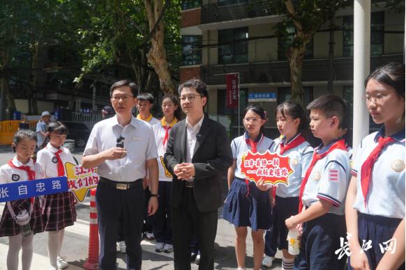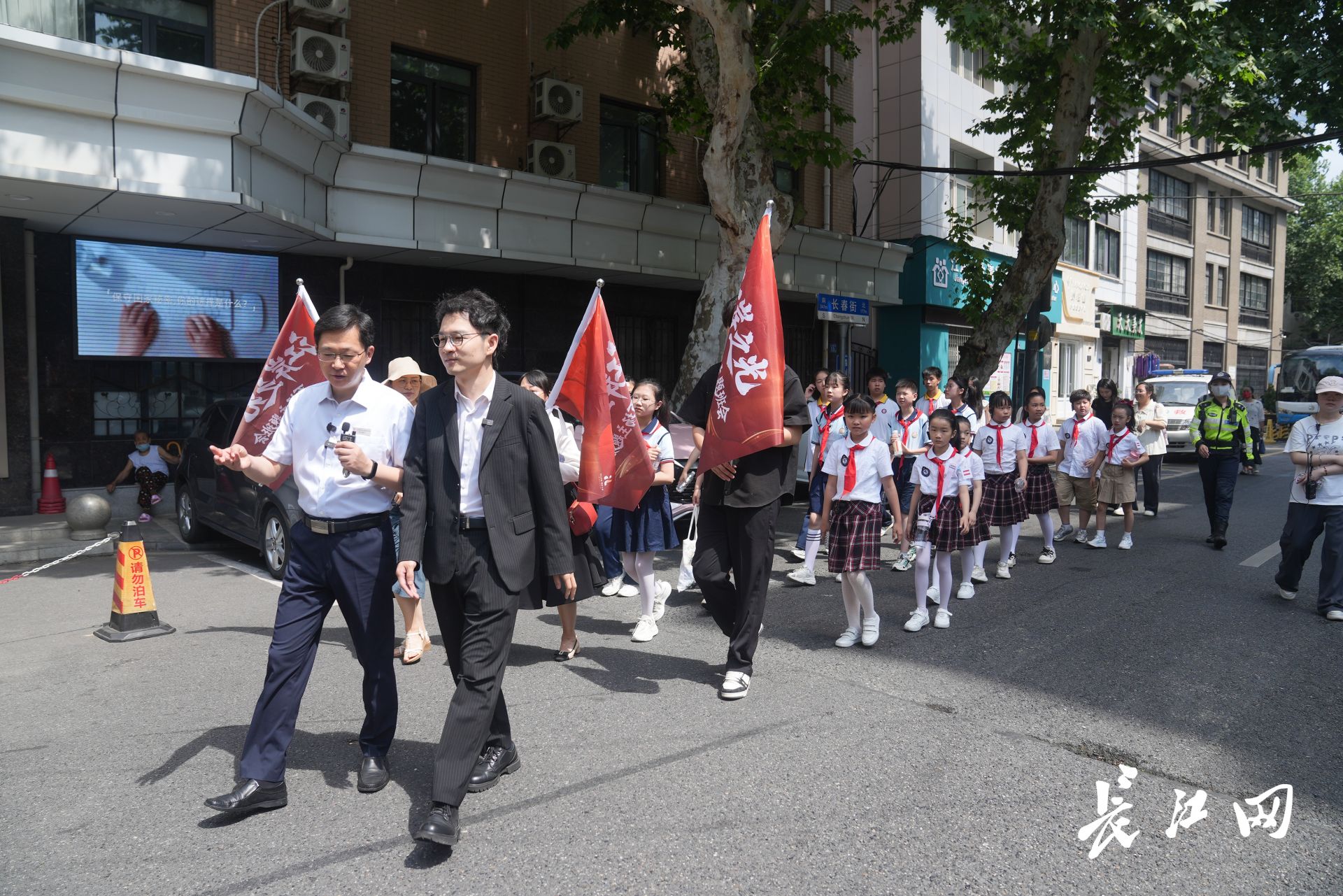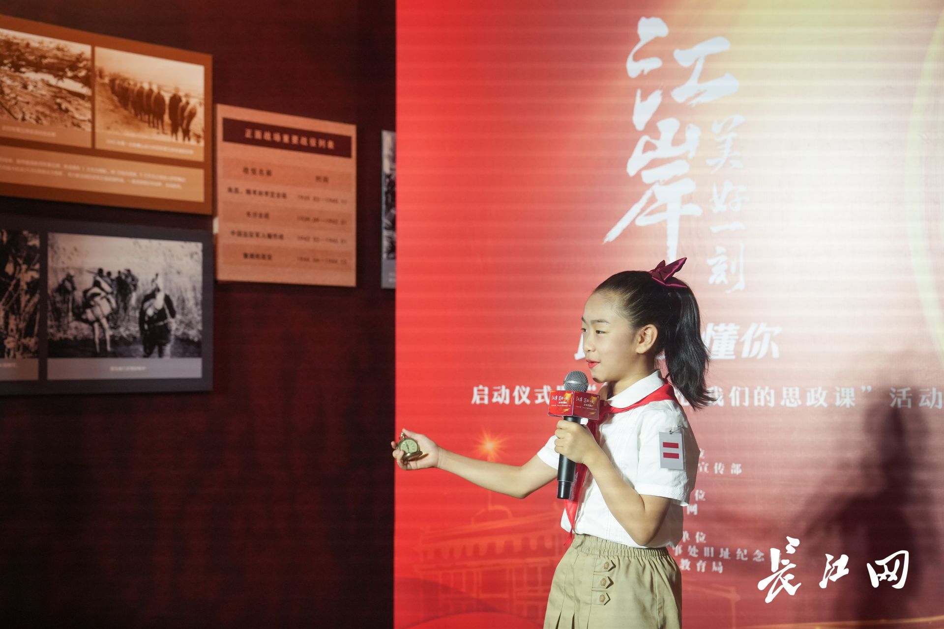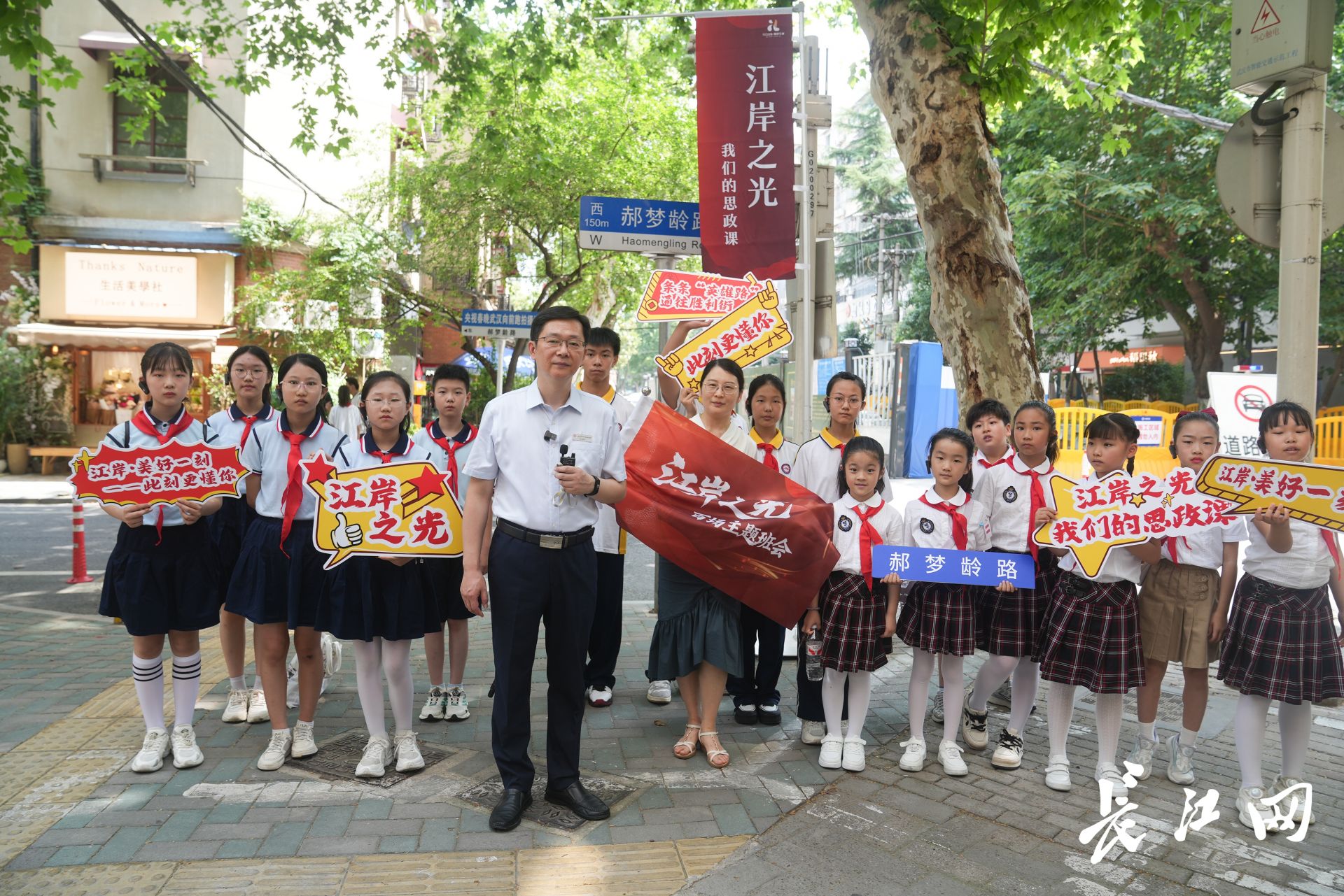 “聽了陸鳴老師說路名,我們都想實地去看看。”啟動儀式后,“江岸之光”全區中小學校百場主題班會首場在孩子們的期待中開啟,參與活動的師生代表與嘉賓從紀念館出發,沿勝利街實地探訪郝夢齡路、張自忠路、陳懷民路等“英雄路”。
