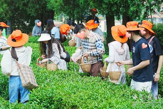 茶山綠意間,青年們親手采擷天地靈氣,感悟“一盞清茶酬知音”的雅意。裊裊茶香中,協作與歡笑為緣分寫下序章,靜好時光里,惺惺相惜的默契悄然萌芽。
