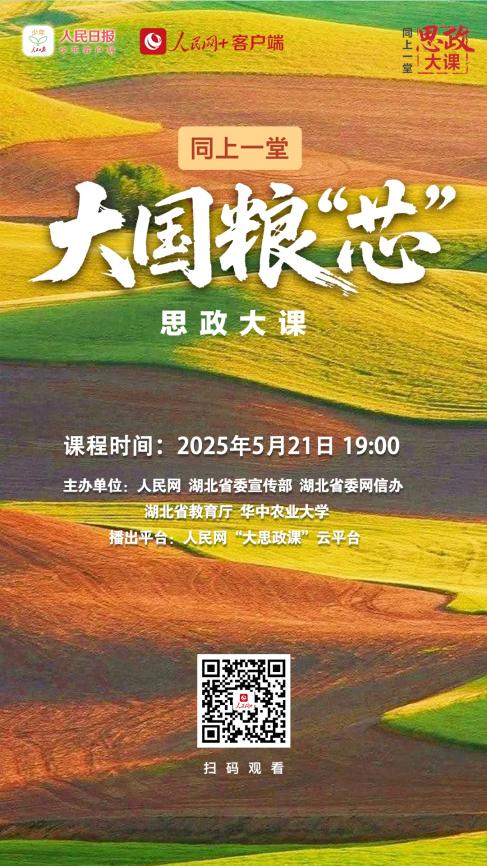民以食為天,當飯碗牢牢地端在自己的手上的時候,才能掌握糧食安全主動權。5月21日19:00,同上一堂“大國糧‘芯’”思政大課,聽中國工程院院士、華中農業大學教授傅廷棟;第十四屆全國政協委員,華中農業大學校長、教授嚴建兵;華中農業大學馬克思主義學院青年教師張圓夢,講述農業科研人員守護大國糧倉的故事,讓青春之花綻放在祖國最需要的地方!