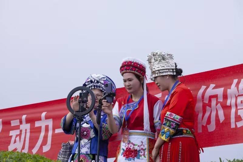 (圖為:漁山源生態農業有限公司創始人張靜(中)開直播帶貨)