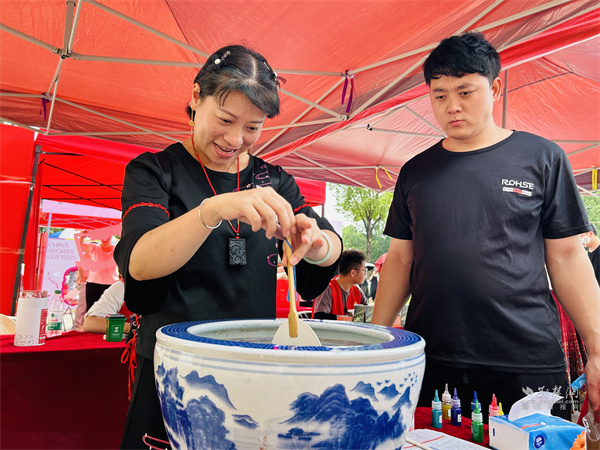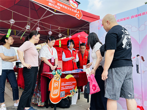 紫陽湖畔設立婚育宣傳區,為即將步入婚姻殿堂的新人打造集浪漫、唯美、溫馨為一體的“520”專屬體驗。活動設置“漆扇傳情·非遺承新”“風鈴祈愿·幸福連線”“囍結良緣”等主題打卡點,新人們現場體驗非遺技藝,在傳統與現代的婚俗中完成幸福寄語,領取象征“清風吹散舊俗”的風鈴,清脆的響鈴成為文明新風的流動風景。“用非遺技藝見證婚姻,既有儀式感又有文化味。”新人李女士輕撫扇面說道。