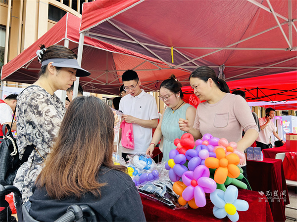 在“愛心手作?以愛筑家”環節,陽光家園殘疾手藝人現場制作婚育主題氣球,義賣所得注入社區公益金,為新人提供“婚姻登記+公益捐贈”的特殊體驗,既為新人留存浪漫紀念,又倡導了“小善聚大愛”的公益理念。