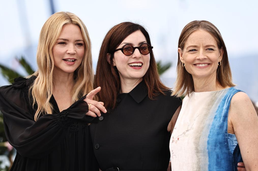 5月21日,在法國南部小城戛納舉行的第78屆戛納國際電影節上,比利時演員維爾日妮·埃菲拉、法國導演麗貝卡·茲羅托斯基和美國演員朱迪·福斯特(從左到右)亮相非競賽單元影片《私生活》的拍照式。新華社記者 高靜 攝