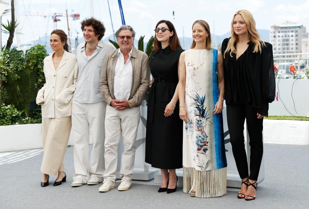 5月21日,在法國南部小城戛納舉行的第78屆戛納國際電影節上,法國導演麗貝卡·茲羅托斯基(右三)攜主創人員亮相非競賽單元影片《私生活》的拍照式。新華社記者 高靜 攝