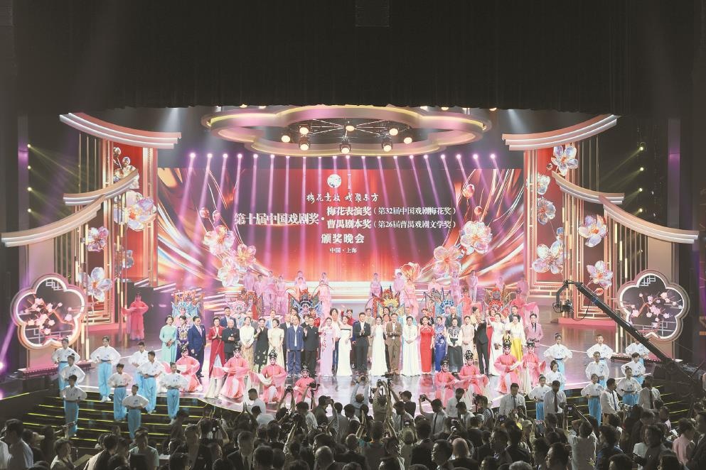 21日晚,由中國文聯、中國劇協、上海市委宣傳部聯合主辦的第十屆中國戲劇獎·梅花表演獎(第32屆中國戲劇梅花獎)、第十屆中國戲劇獎·曹禺劇本獎(第26屆曹禺戲劇文學獎)頒獎晚會在上海隆重舉行。