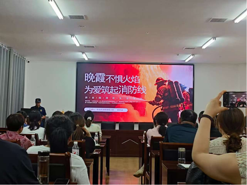 培訓現場,消防宣傳員立足養老機構人員特點和建筑消防實際,以近年來國內發生的典型火災案例為切入點,用通俗易懂的語言,向養老機構工作人員詳細講解火災隱患排查方法、初期火災撲救技巧、正確報警流程以及逃生自救要點。工作人員們聆聽講解,積極回應消防宣傳員的互動提問,踴躍參與知識問答環節。培訓過程中,全體人員還共同觀看了《養老機構與老年公寓火災警示片》,一幕幕觸目驚心的火災場景,以直觀的方式敲響消防安全警鐘。