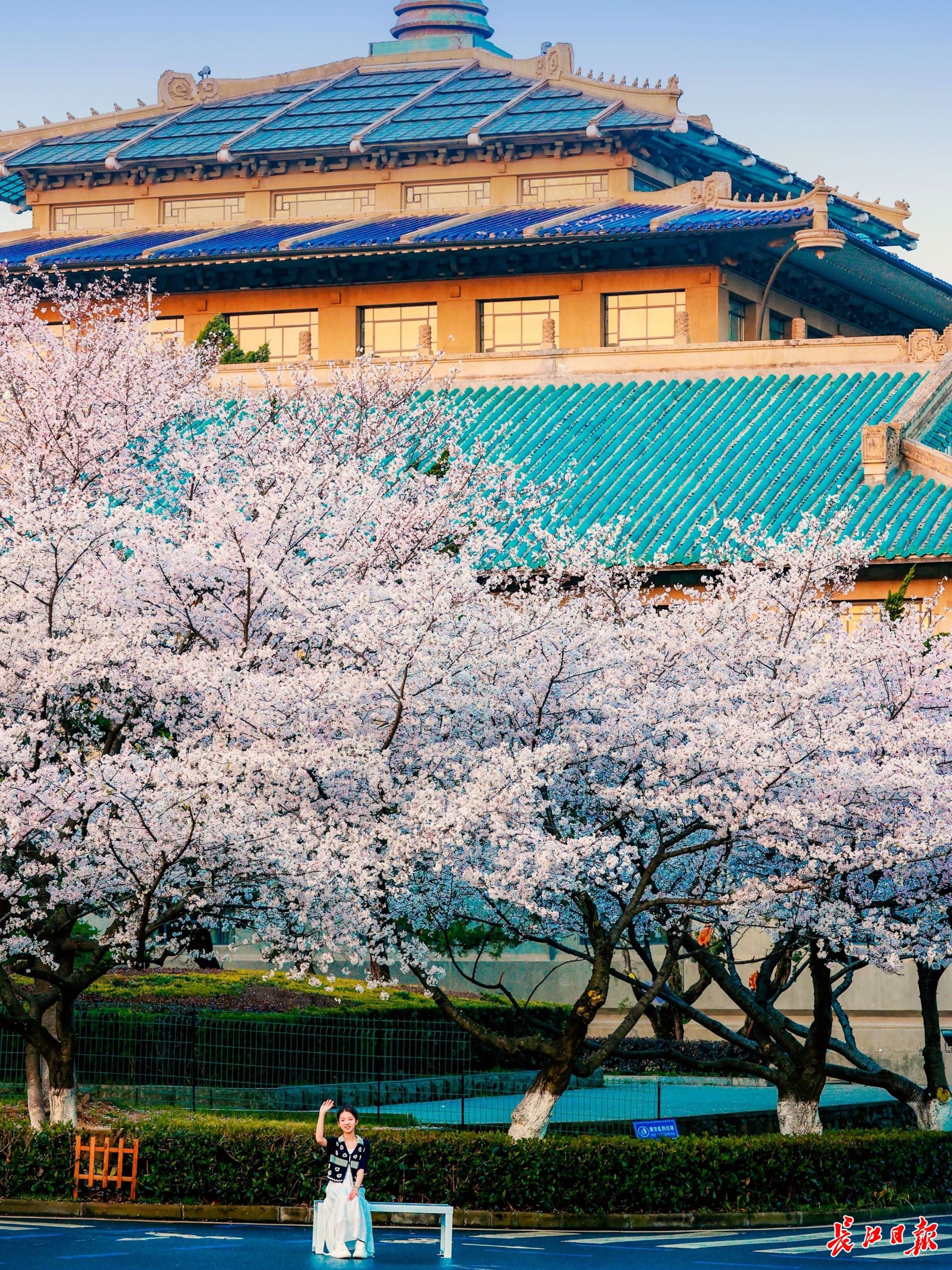 武漢大學櫻花盛放。(圖源:長江日報城市攝影隊)
