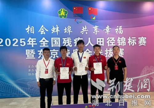 荊楚網(湖北日報網)訊(通訊員 趙繼、曹吉芬)近日,在2025年全國殘疾人田徑錦標賽暨東京聾奧會選拔賽中,鐘祥籍田徑運動員祝家周表現卓越,在男子聽障組賽事里,一舉斬獲4×400米接力金牌,同時將4×100米接力銀牌、400米欄銀牌收入囊中。