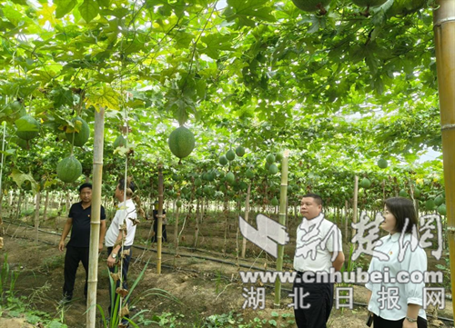 轉(zhuǎn)機(jī)始于一次“頭雁”領(lǐng)航的探索,2018年,何家村黨支部書記廖奎發(fā)立足本村溫暖濕潤(rùn)、光照充足的氣候條件,深厚砂壤、排水良好的土質(zhì)環(huán)境等資源稟賦,先后前往山東、安徽等多省實(shí)地考察調(diào)研,最終選定籽可炒食,皮、根均可入藥的瓜蔞作為發(fā)展方向。經(jīng)過2年試種和探索,在鄉(xiāng)黨委、區(qū)級(jí)農(nóng)業(yè)部門、包聯(lián)單位多方幫扶下,何家村于2020年正式成立荊門創(chuàng)何生態(tài)農(nóng)業(yè)發(fā)展有限公司,向產(chǎn)業(yè)化正式邁進(jìn)。