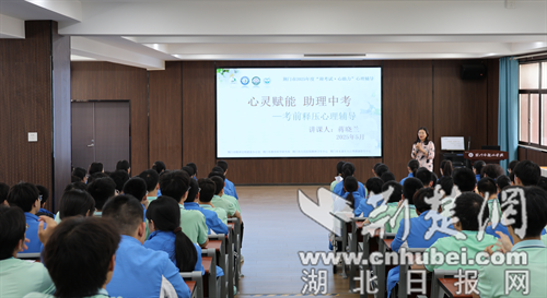 啟動(dòng)儀式上,荊門市未成年人心理健康指導(dǎo)中心心理輔導(dǎo)員蔣曉蘭作了《心靈賦能 助力中考》主題輔導(dǎo)。學(xué)校400余名九年級(jí)學(xué)生及班主任現(xiàn)場(chǎng)參與了互動(dòng)。