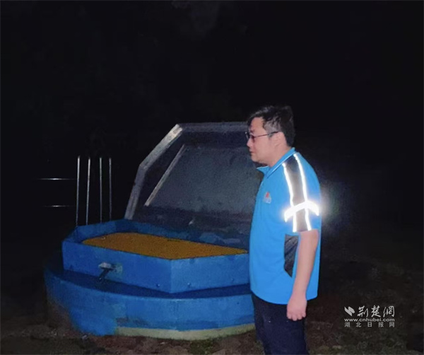 工作人員深夜在風華天城易積水點值守。 通訊員供圖