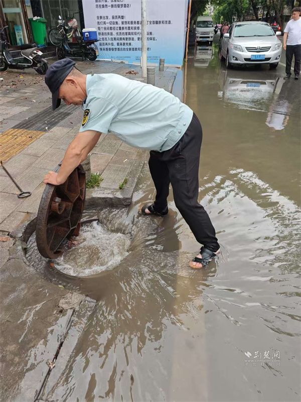 工作人員打開下水井蓋緊急排水。 通訊員供圖