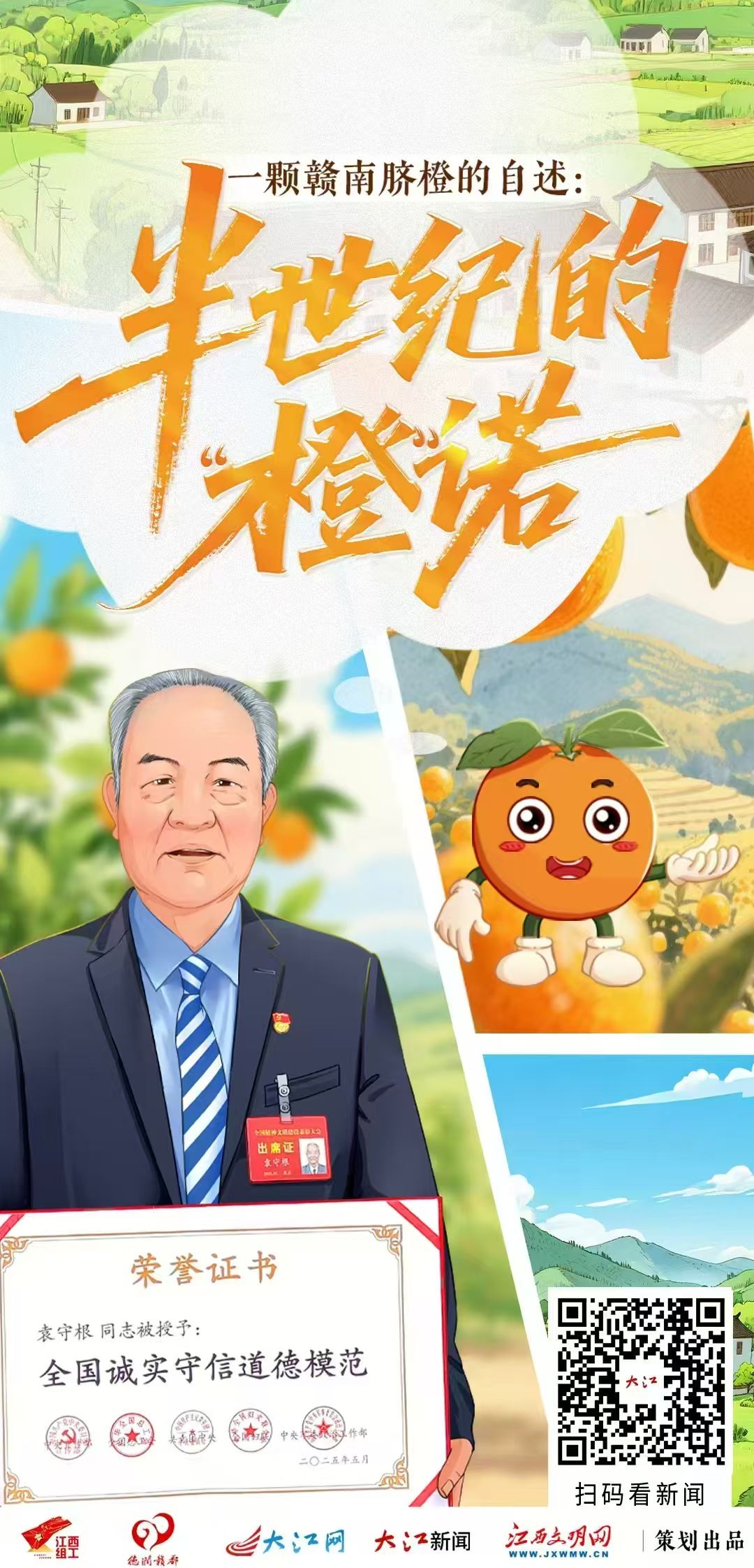 從156株到194萬畝,從29歲到84歲,從一個人到百萬果農,我是贛南臍橙,我的記憶里永遠鐫刻著袁守根的“橙”諾——要陪伴臍橙一輩子,讓臍橙造福一方人。