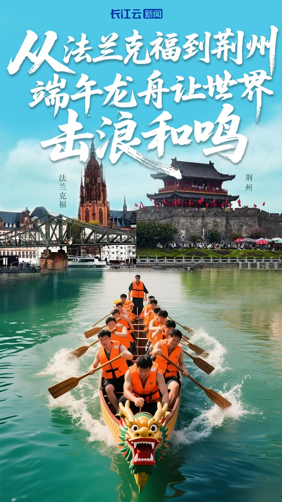 從中國(guó)荊州的護(hù)城河到德國(guó)法蘭克福的美因河,這場(chǎng)跨越時(shí)空的“雙城競(jìng)渡”,不僅展現(xiàn)了龍舟運(yùn)動(dòng)的激情,更架起了文明互鑒的橋梁。