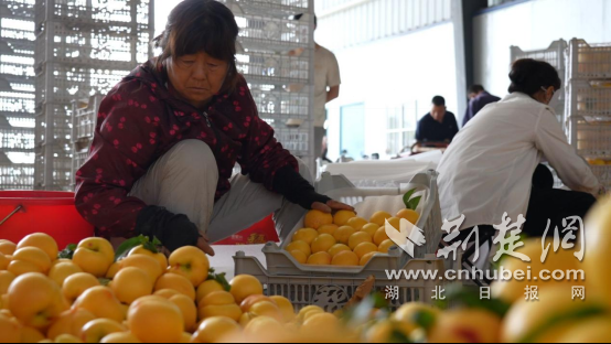 分揀、裝箱、裝車,下午三點,王登峰與其他兩戶果農的1萬多斤精品桃從這里發往武漢。