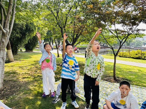 活動在經典共讀中拉開序幕,社區志愿者帶領孩子們圍坐湖畔,聲情并茂地吟誦經典詩詞,清脆童聲與湖水漣漪相映成趣。在森林故事盲盒環節,孩子們隨機抽取名著片段卡片,用童真視角分享對勇氣、友誼等主題的理解。“在湖邊和大家一起朗誦過兒童節,特別開心!”張思諾小朋友開心地表示。