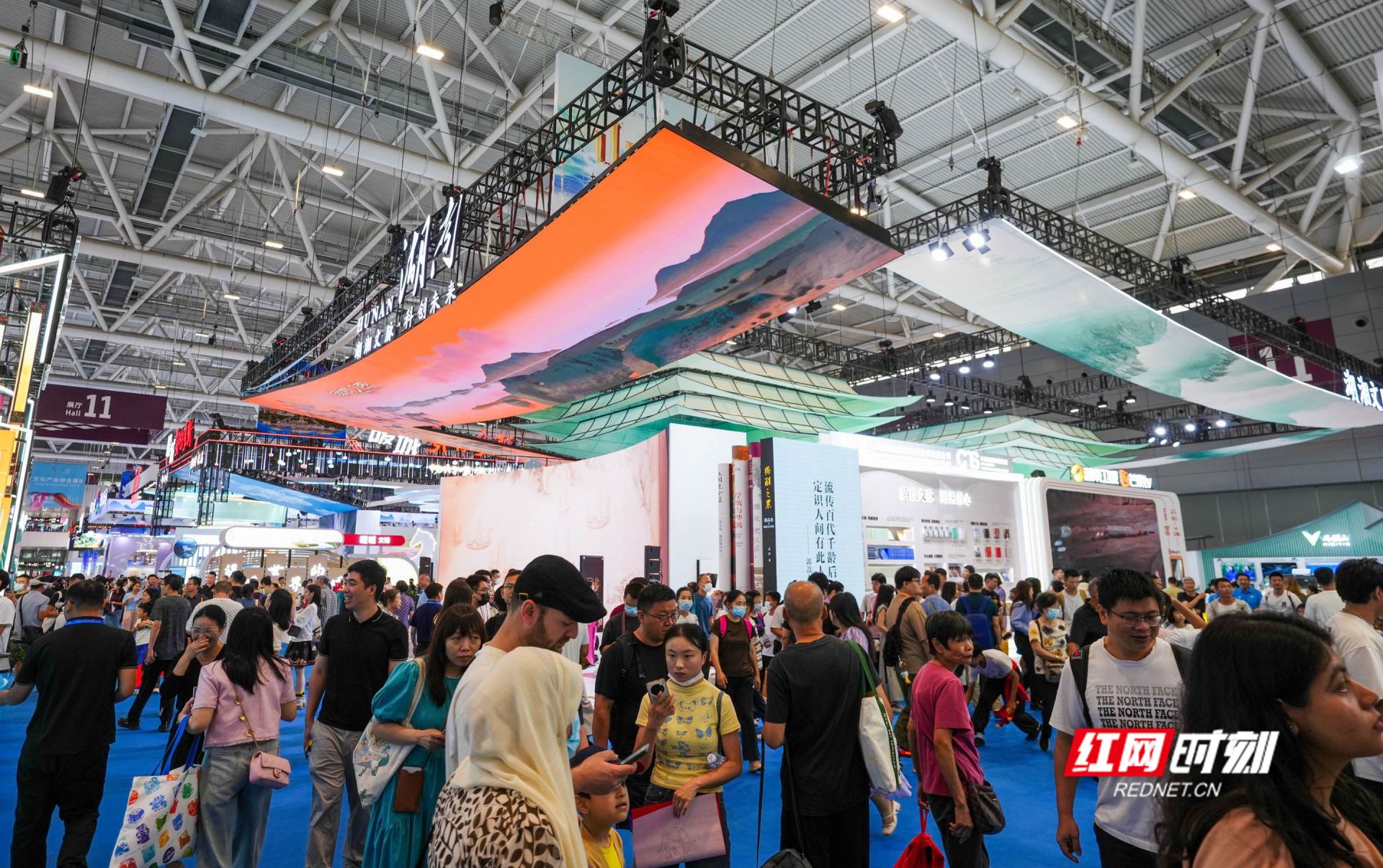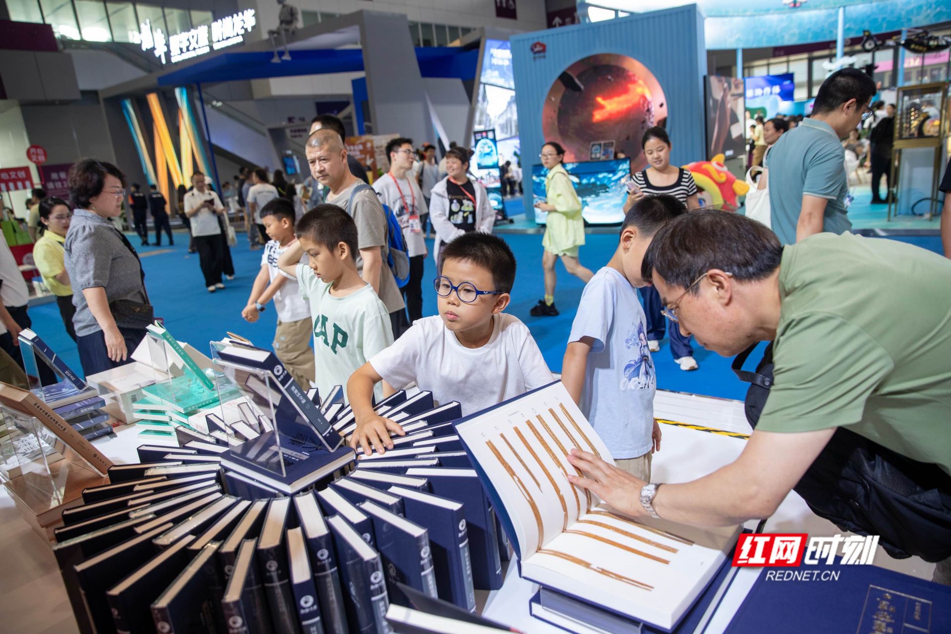 湖南出版集團展區吸引大批讀者駐足翻閱、現場購書。