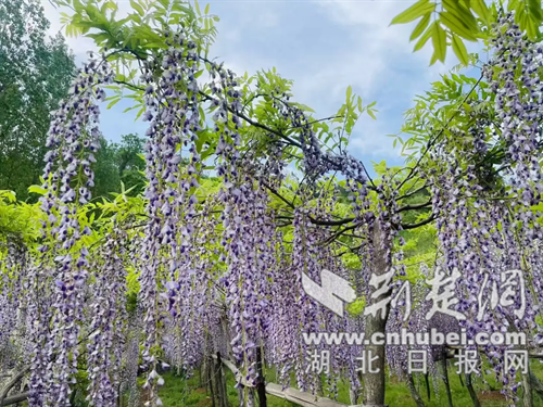 荊楚網(湖北日報網)訊(通訊員徐申超)“紫藤掛云木,花蔓宜陽春。”5月26日,筆者來到荊門市東寶區栗溪鎮趙灣村七里坡的“豹子洞溝紫藤園”,近200株紫藤花架蜿蜒在兩邊山坡和巖石縫里,錯落有致。待到來年三四月紫藤花開,深深淺淺的花穗點綴枝頭,搖曳生姿、馥郁芬芳,浪漫動人,約上三五好友在紫藤花下漫步,別有一番春天韻味。