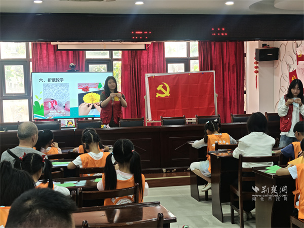 手工實踐環節,志愿者準備了彩紙、剪刀等工具,耐心細致地向孩子們傳授折紙技巧。在志愿者的悉心指導下,孩子們紛紛動手折花,不一會兒,一朵朵色彩繽紛的郁金香在孩子們手中綻放。