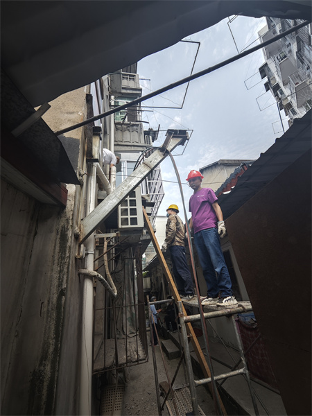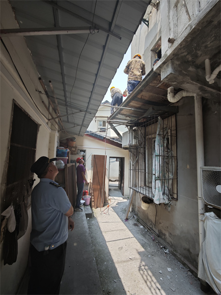 近日,黃鶴樓街道綜合執法中心接到社區網格巡查報告,吉祥巷某居民樓外疑似存在違規搭建行為。執法人員抵達現場后發現,該處違建采用鋼架結構焊接于樓棟外墻,整體懸空于二層高度,下方正對人員密集的狹窄巷道。違建面積約4平方米,系房主為拓展居住空間,違規將其改造為廚房及衛生設施。
