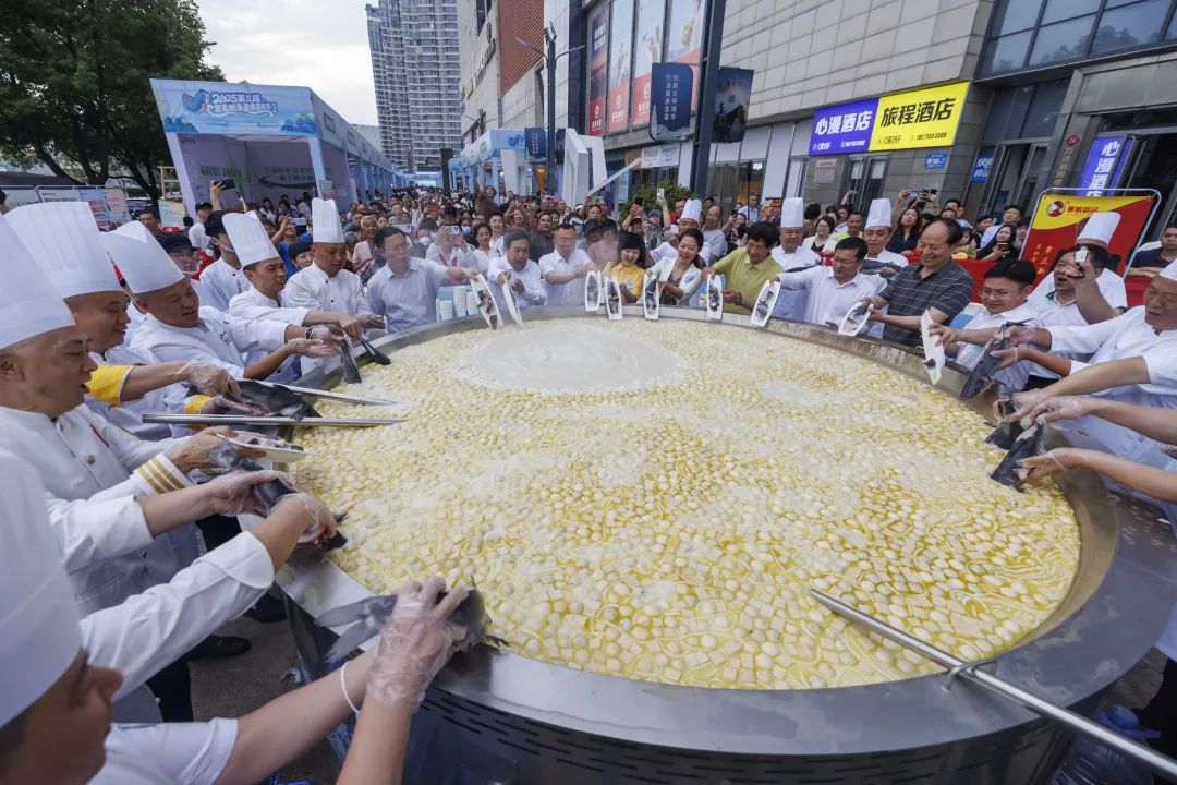 2025年第三屆宜昌肥魚美食嘉年華暨伍家夜宴,直徑3m大鍋熬煮肥魚。